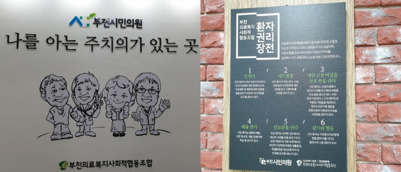 부천시민의원을 찾아가는 길엔 사람 냄새가 물씬 묻어났다. 족발집, 사진관, 동네마트, 떡집, 건어물상, 생선가게, 옷가게 등이 늘어선 부흥시장 골목을 지나면 부천시민의원을 만날 수 있다. 병원 계단을 오르면 ‘나를 아는 주치의가 있는 곳’이란 큰 글귀가 제일 먼저 환자들을 반긴다. 병원 내부엔 동네 병원에서 흔히 볼 수 있는 ‘주사치료’, ‘수액치료’를 권하는 광고를 찾을 수 없다. 대신 광고가 붙어야 할 자리엔 환자들이 자신의 질병 또는 상태에 대해 ‘알 권리’와 ‘진료받을 권리’ 등을 써 놓은 ‘환자권리장전’이 걸려 있다. 겉으로 보기에도 다른 병원들과 확연히 다른 이곳 부천시민의원의 특징은 ‘돈’이 아닌 ‘환자’가 중심이라는 것이다.