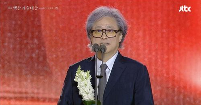 박찬욱 감독은 5일 오후 서울 강남구 코엑스 D홀에서 열린 제61회 백상예술대상 시상식에서 ‘전,란’으로 공동 각본가인 신철 작가와 함께 영화 부문 각본상을 수상했다.