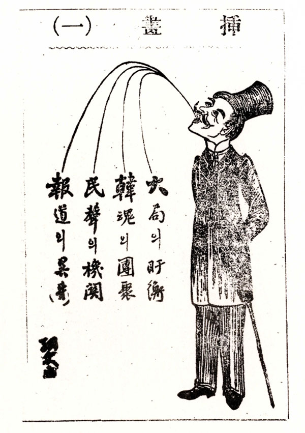 한국 최초의 시사만화, 1909년 6월 2일 대한민보 창간호에 게재된 이도영 화백 작품 ⓒ전국시사만화협회 제공