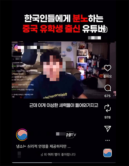 8월 2일 인스타그램에서 100만이 넘는 조회수를 기록한 영상. 중국이 한국을 망가뜨리고 있는데 한국이 침묵하고 있다는 주장을 펴고 있다. ⓒ필자 제공