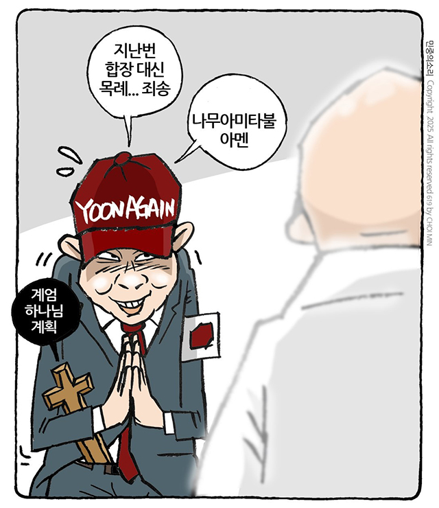 최민의 시사만평 - 하나님 계획? ⓒ최민 논설위원·시사만화가