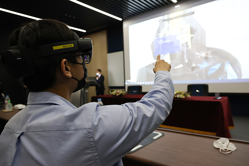 포항공대 전자전기공학과 LG연구동에서 열린 가상(VR),증강(AR), 혼합현실(MR) 겸용 강의실에서 학생들이 수업 모습을 재현하고 있다.(자료사진) 2021.5.27 ⓒ뉴스1