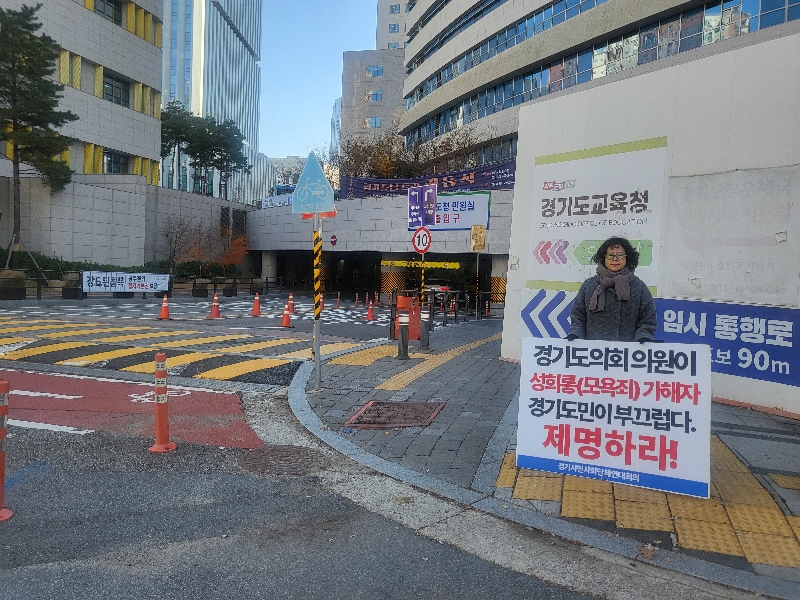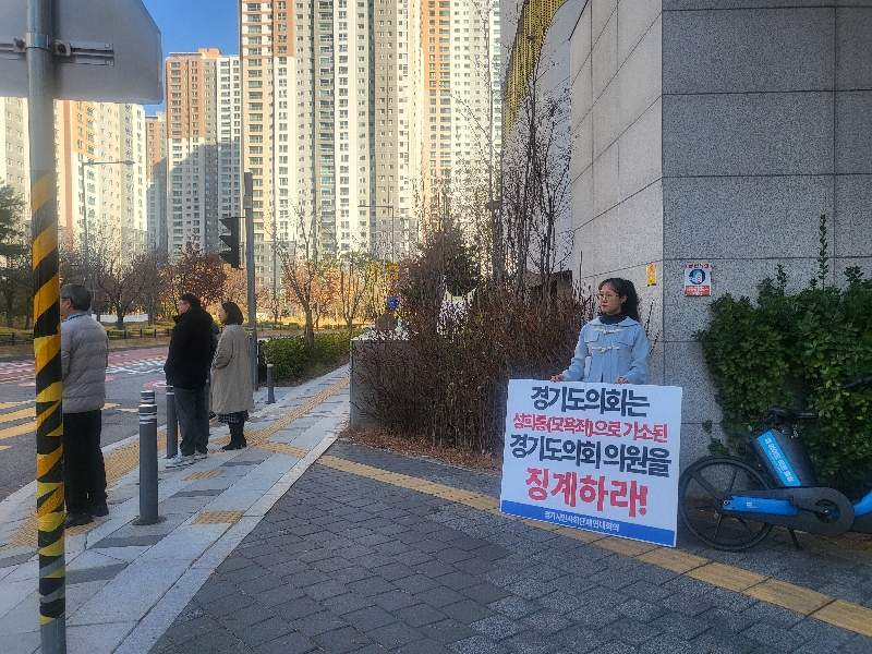 한편 연대회의는 이날부터 성희롱 기소 의원에 대한 징계를 요구하는 무기한 1인 시위를 이어가며, 경기도의회가 더 이상 책임을 회피하지 말고 분명한 결단을 내릴 때까지 행동을 멈추지 않겠다고 밝혔다.