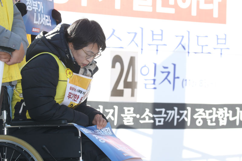 지난달 8일부터 홈플러스 사태 해결을 촉구하며 곡기를 끊었던 노동자들이 물과 소금 섭취마저 중단하는 극한 단식 투쟁에 돌입했다. 홈플러스가 새 주인을 찾지 못한 채 청산 기로에 놓이는 등 상황이 악화됐기 때문이다. 이들은 더 이상 홈플러스 사태를 민간에만 맡겨둬서는 안 된다며 정부의 조속한 개입을 촉구했다.