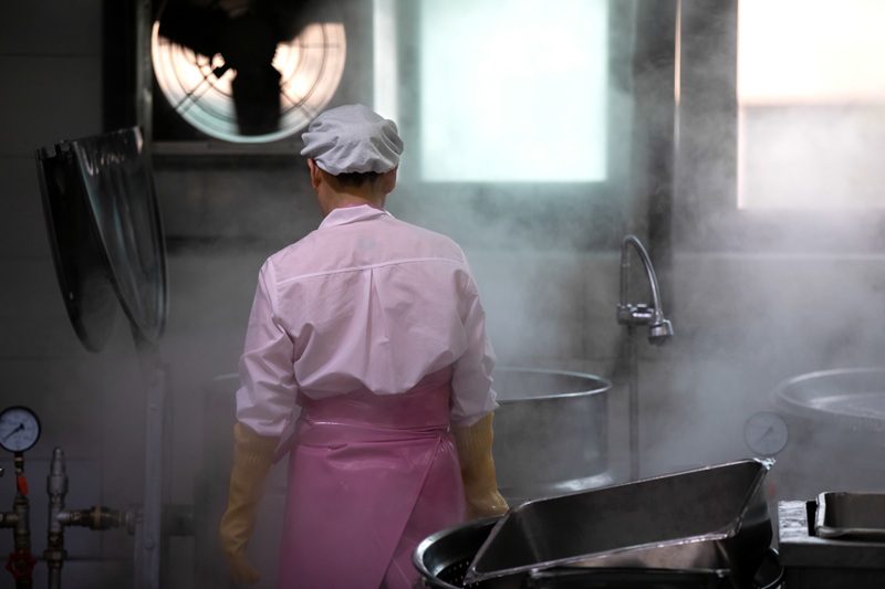 한 학교급식노동자가 뜨거운 연기가 가득 올라오는 솥을 바라보고 있다. (본 사진은 자료사진입니다.) ⓒ민주노총 서비스연맹 학교비정규직노동조합