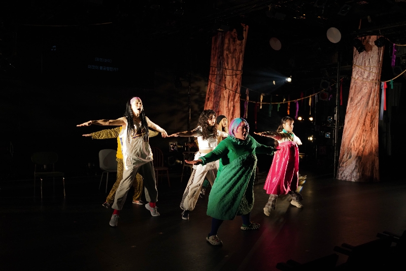 공연기간: 2025년 11월 26일(수) ~ 12월 14일(일) 화·수·목·금 19:30 / 토·일 15:00 / 월요일 쉼 관객과의 대화: 12월 13일(토) 15시 공연 종료 후 김유림·김은희·이화정·정대진·황미영·황순미(작·배우) / 진행 이오진(작·연출) 장소: 두산아트센터 Space111 공연시간: 90분 관람연령: 13세 이상 창작진: 작·연출 이오진 / 작곡 단편선 / 드라마터그 장지영 작·출연 김유림·김은희·이화정·정대진·황미영·황순미 / 프로듀서 강윤지 출연진: 김유림·김은희·이화정·정대진·황미영·황순미 예매: 두산아트센터 홈페이지